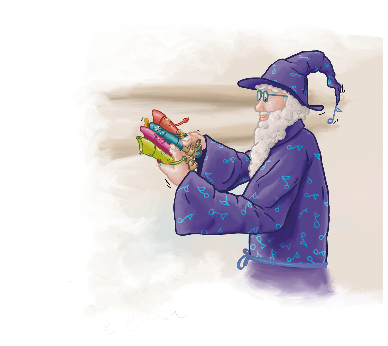 Jedes Fipple-Modell ist mit einer Charakterfigur verbunden, mit der sich Kinder identifizieren können. Der beerenfarbene Teredello bedenkt alles ganz genau und hat viel Fantasie und Empathie. Besonders die tiefen verträumten Töne haben es ihm angetan.